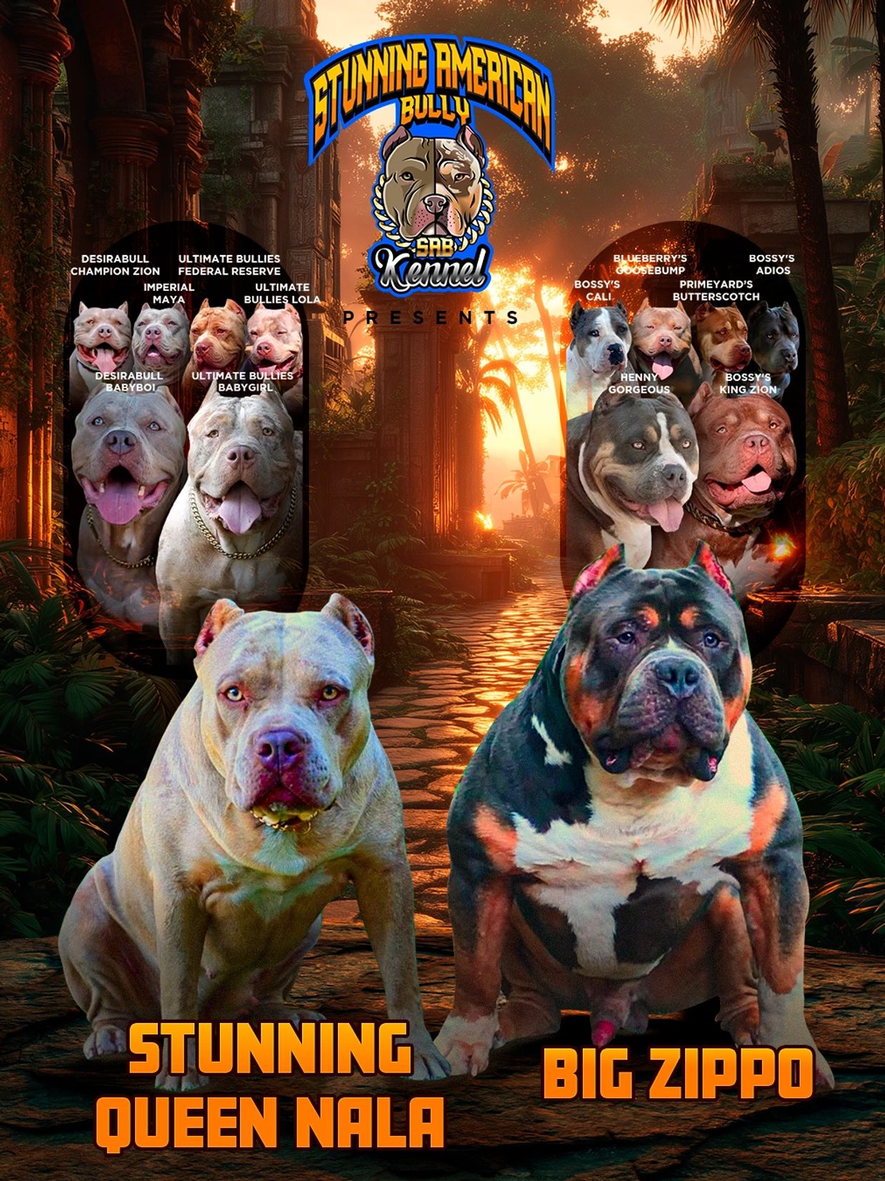 Blue Merle, Lilac Merle, Blue, and LilacFrom this litter, we kept one exceptional Merle female — Queen Nala — who has become a cornerstone of our breeding program. Watching this litter grow and thrive in their new homes has been incredibly rewarding and inspires us to continue producing healthy, well-socialized, and beautiful puppiesAt Stunning American Bully, we believe that every pet deserves to be happy, healthy and loved. That's why we offer a wide range of pet products and services designed to improve the lives of pets and their owners.